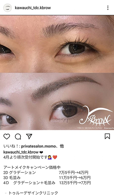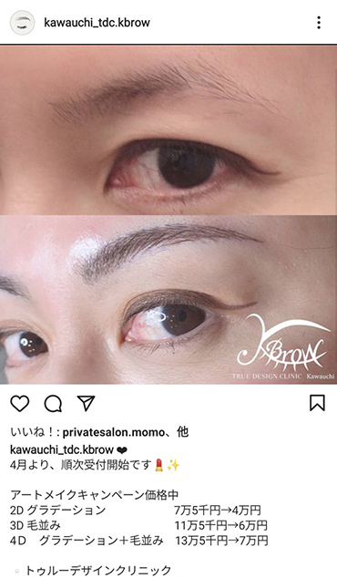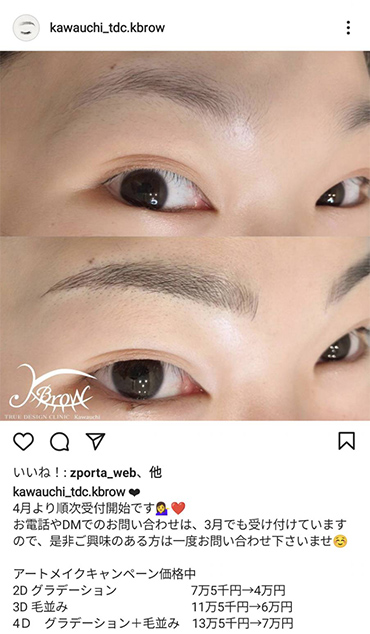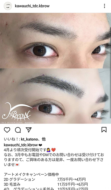 Kbrow 4Dで眉全体にパウダー状の陰影をつけ、さらににより必要な部分に手彫りで1本1本の眉毛を再現します。欠けやムラのない自然な眉に仕上がります。